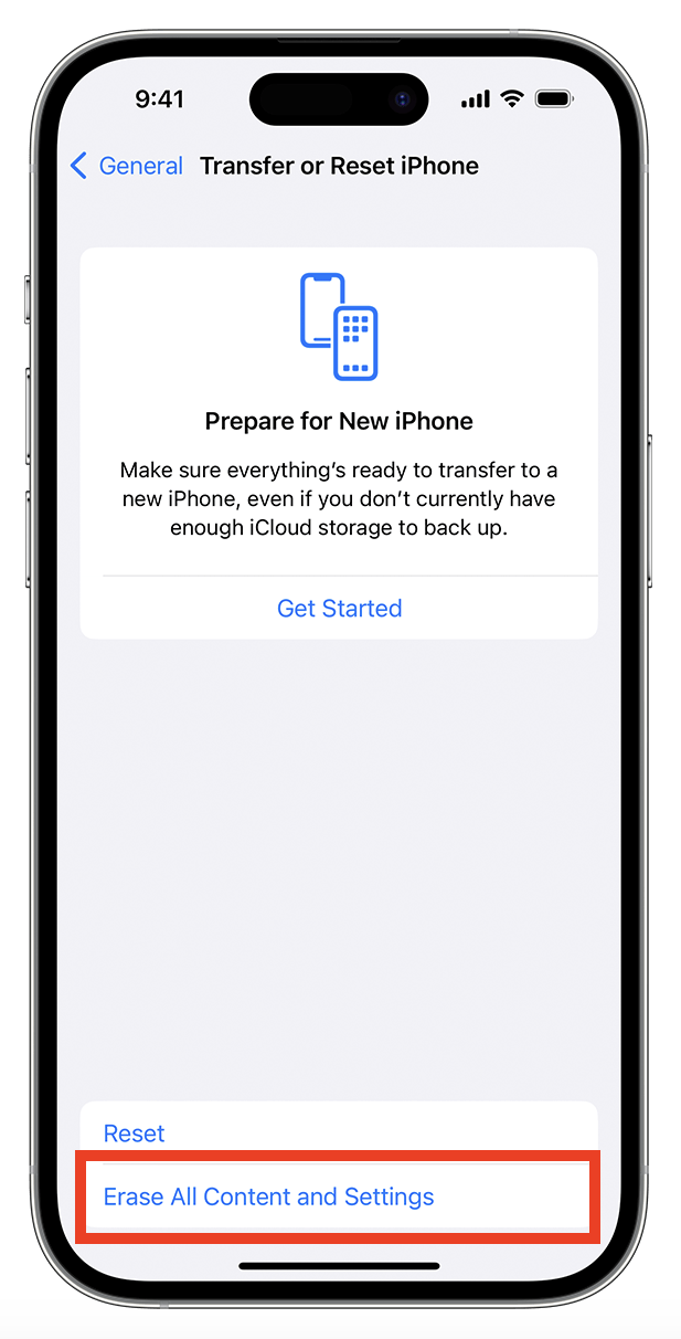 Step 2: Tap Settings > General > Transfer or Reset [Device]. Tap Erase All Content and Settings.