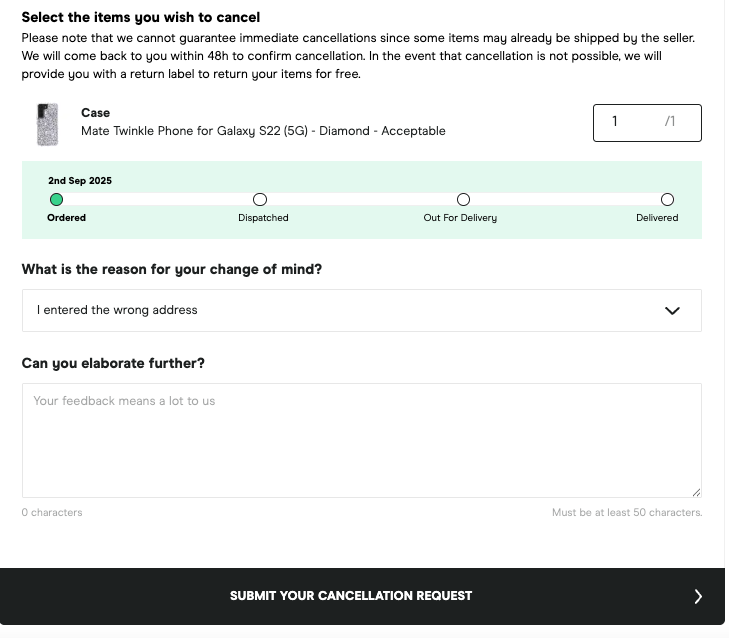 On the following page, select I want to cancel my order